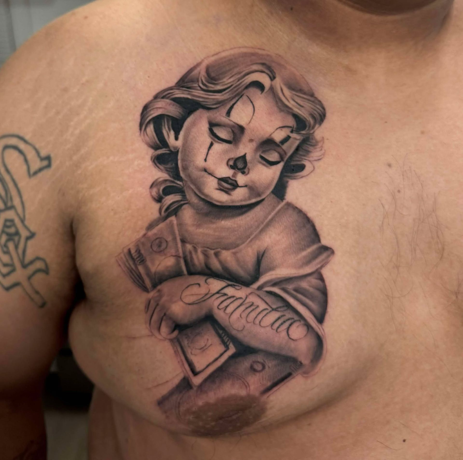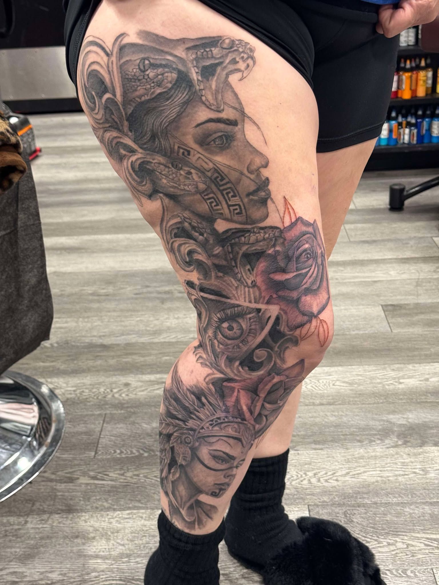 Rob is a black and grey tattoo artist specializing in detailed portraits, surrealism designs, embellished lettering, and intricate shading techniques. With a focus on lifelike textures and bold contrasts, Squeeze211Ink creates custom designs that push the boundaries of style and authenticity . His meticulous approach ensures each piece is a unique work of art, blending precision with creativity to craft tattoos that leave a lasting impression.